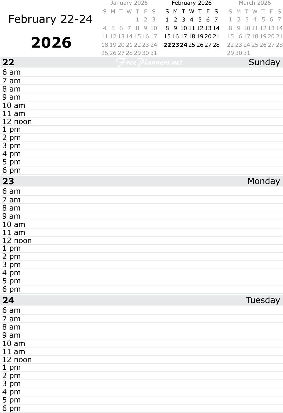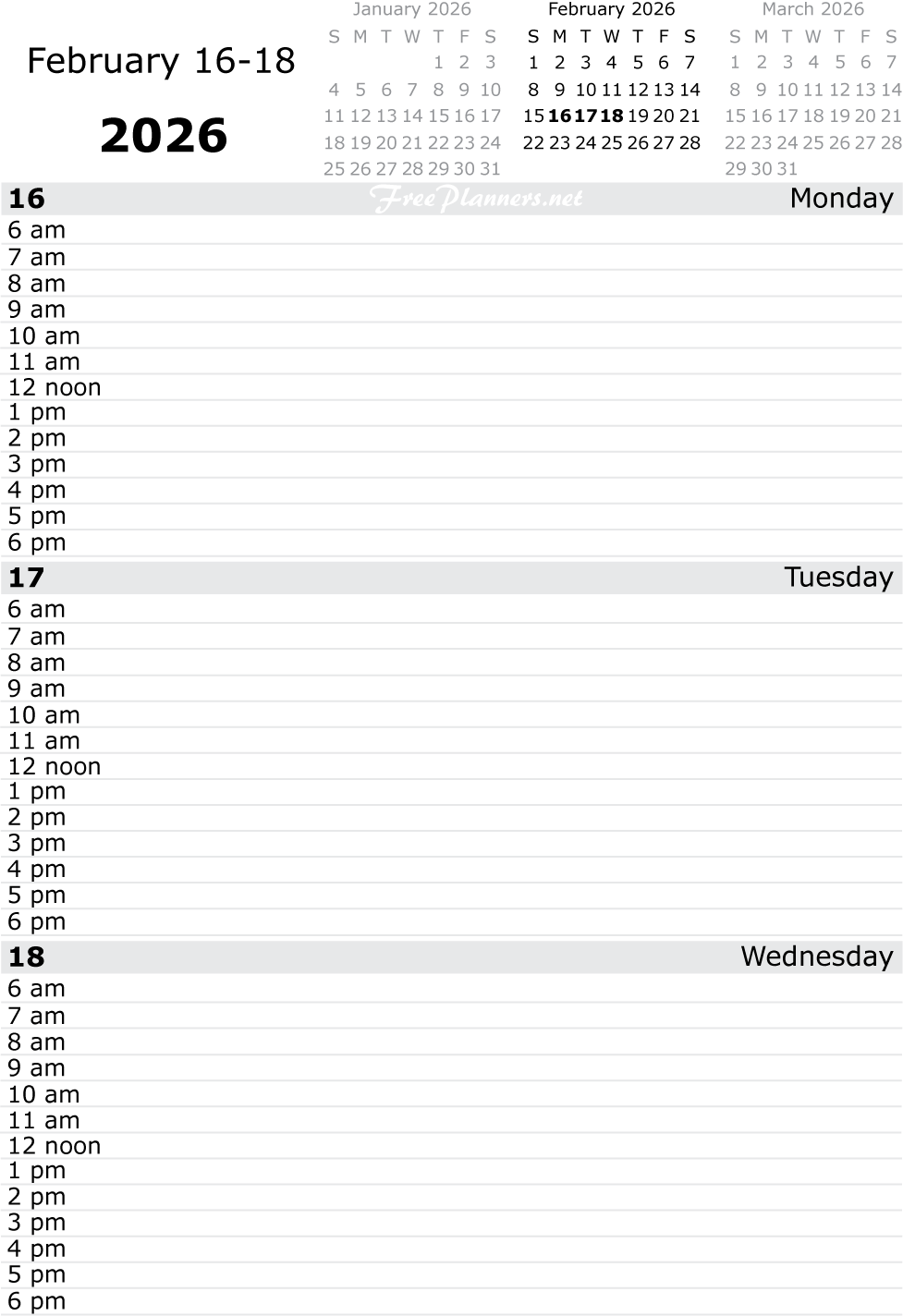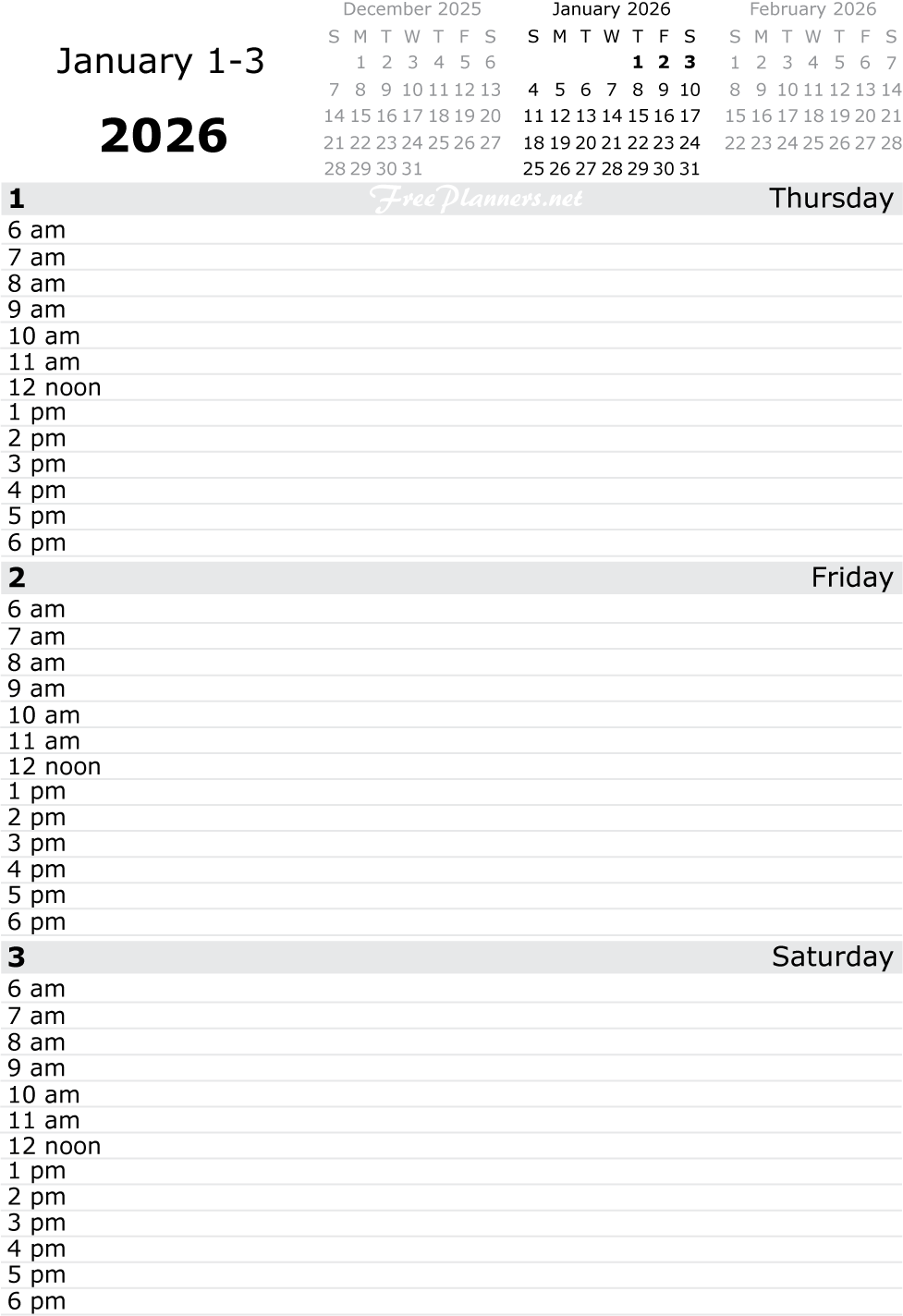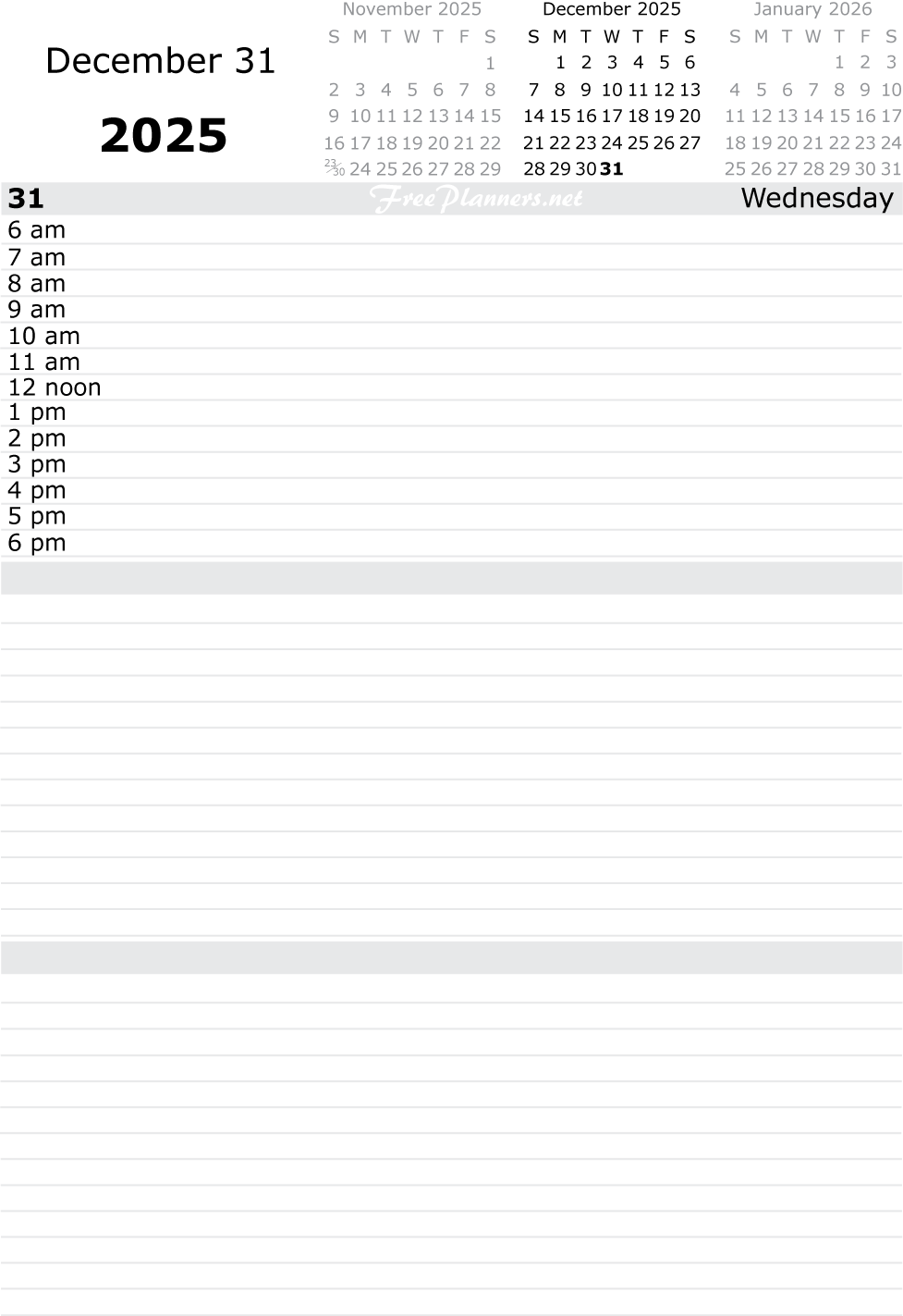Each printable page of our dated daily planners includes three days. Each PDF file below contains all pages for the month listed.