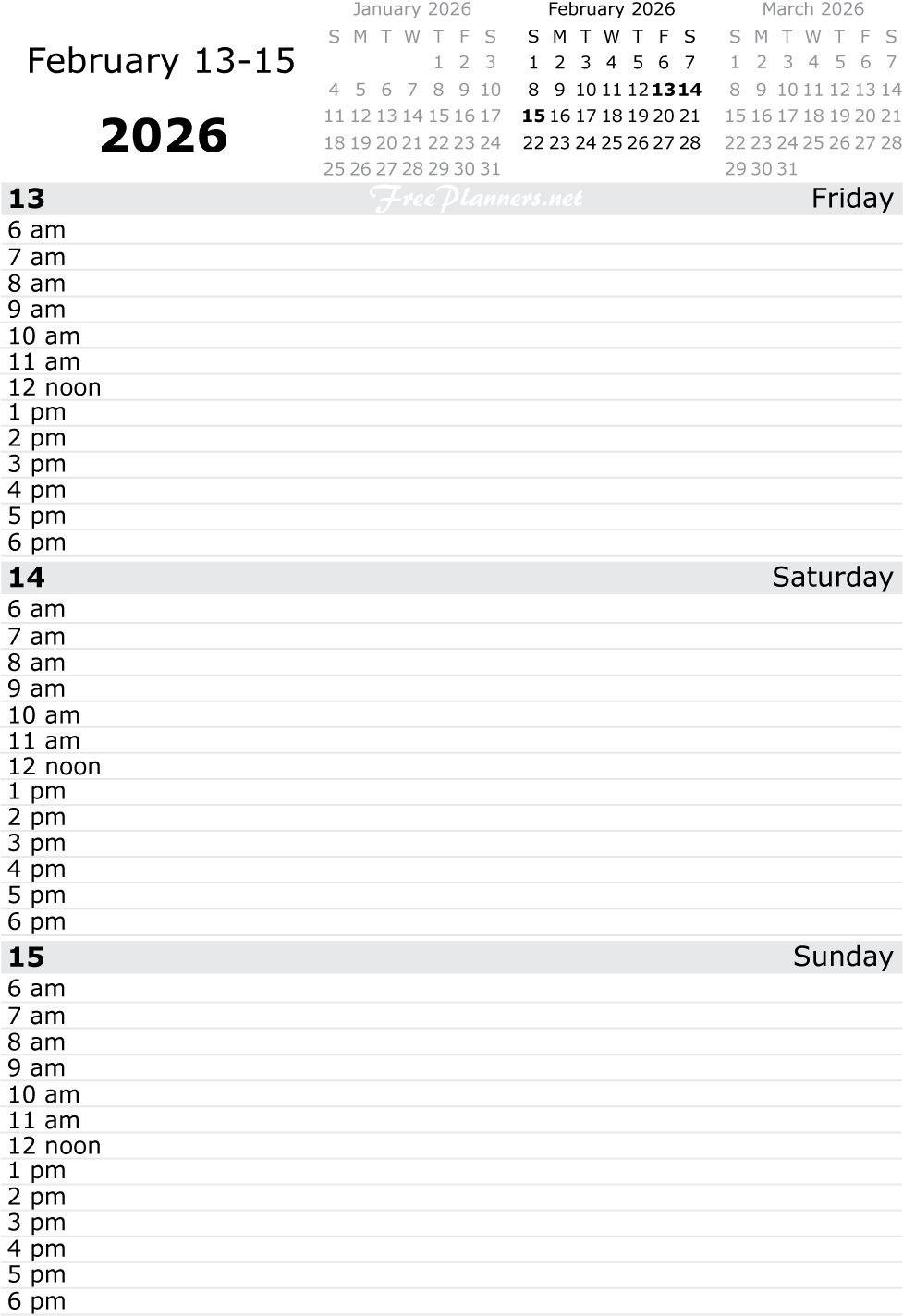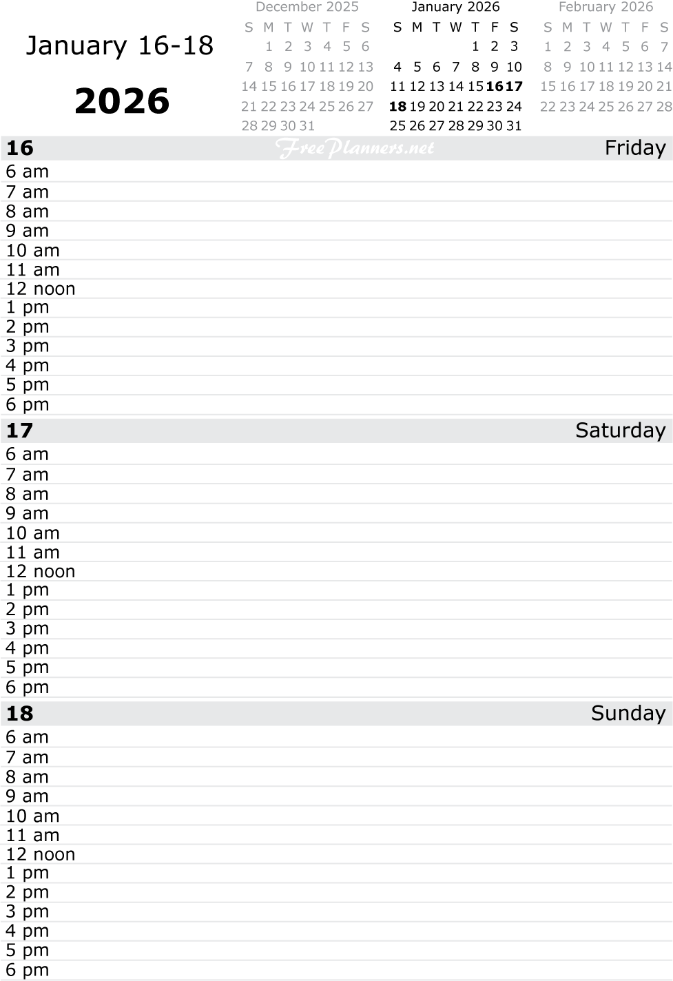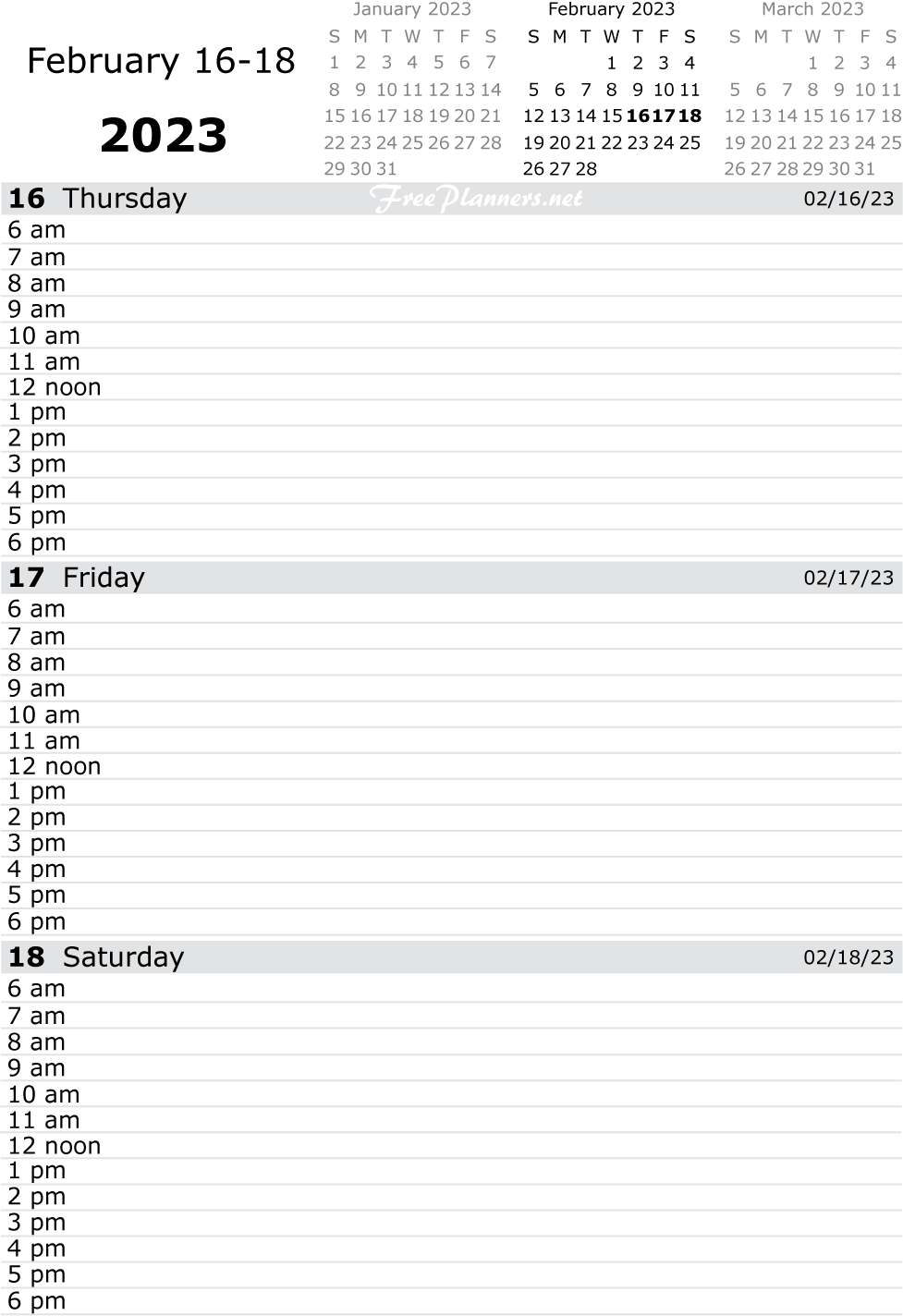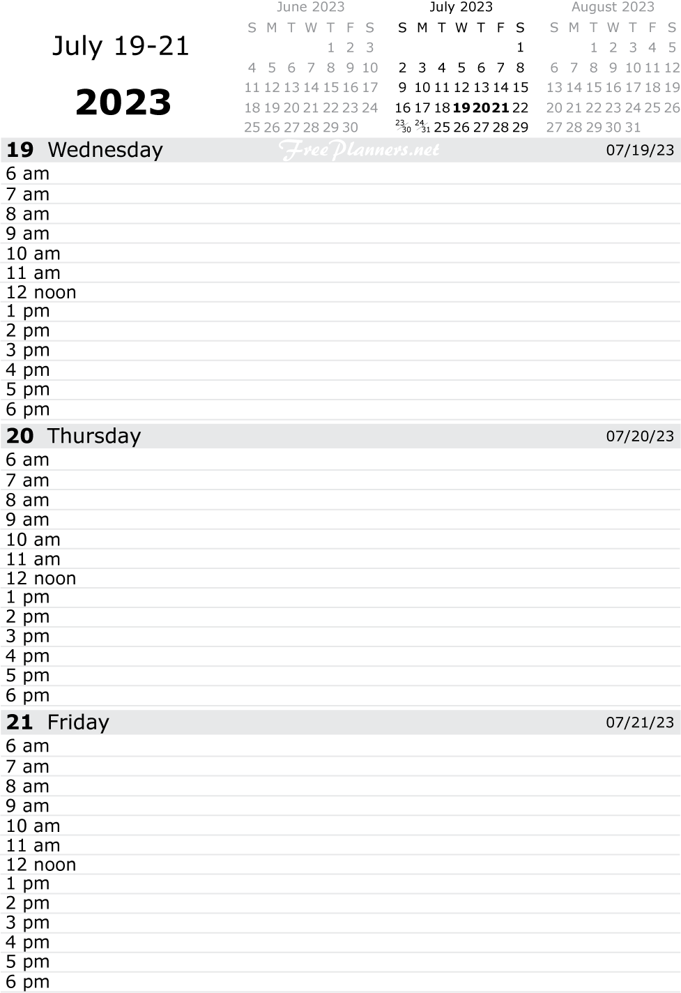 Each printable page of our dated daily planners includes three days. Each PDF file below contains all pages for the month listed.