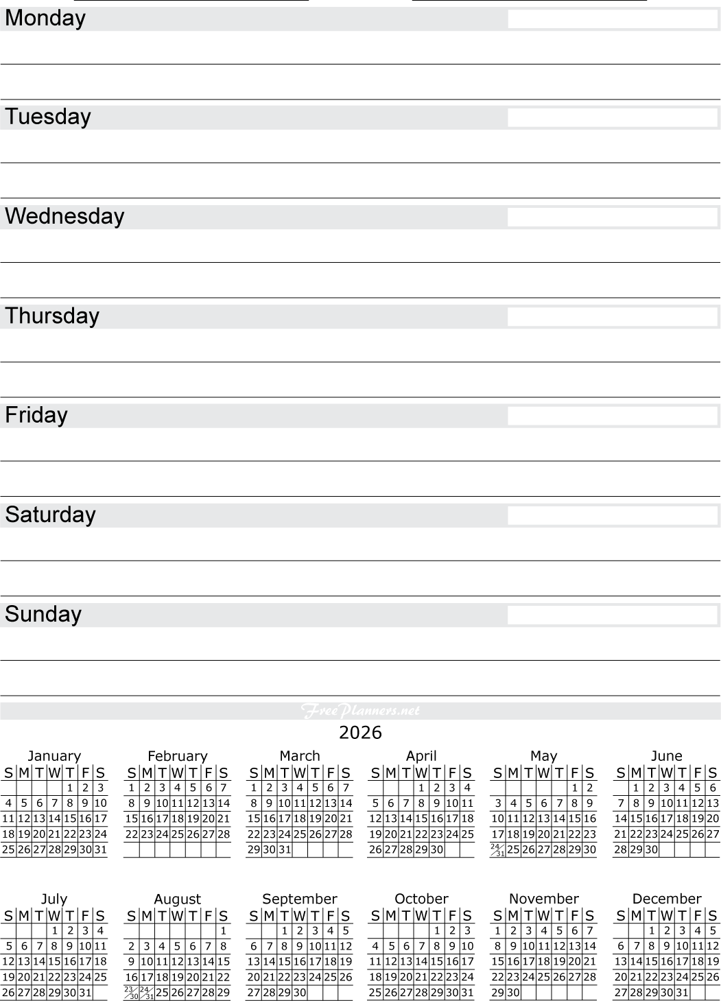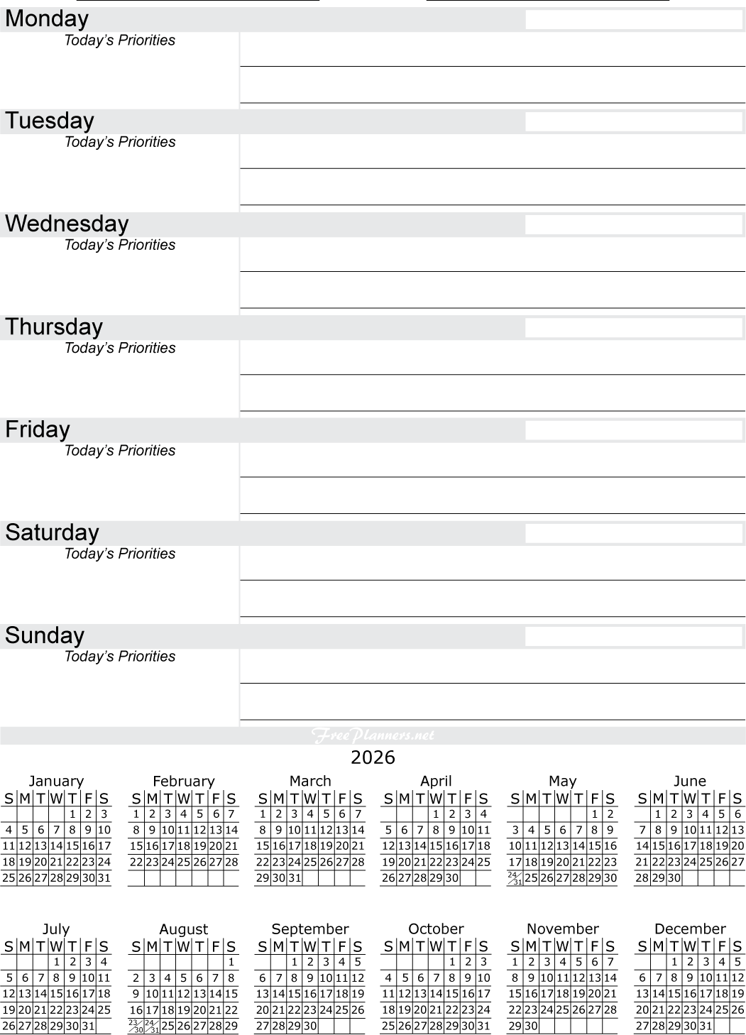 2026 Monthly Calendar Planners
